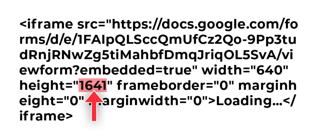 If you look towards the bottom of the code you pasted you’ll see height=”X” where X is an actual number. You can see the value in our example code below, it’s 1641 (but yours will be different. Copy and paste or manually enter those numbers (not the “”) into the Height box near the Save Content button: