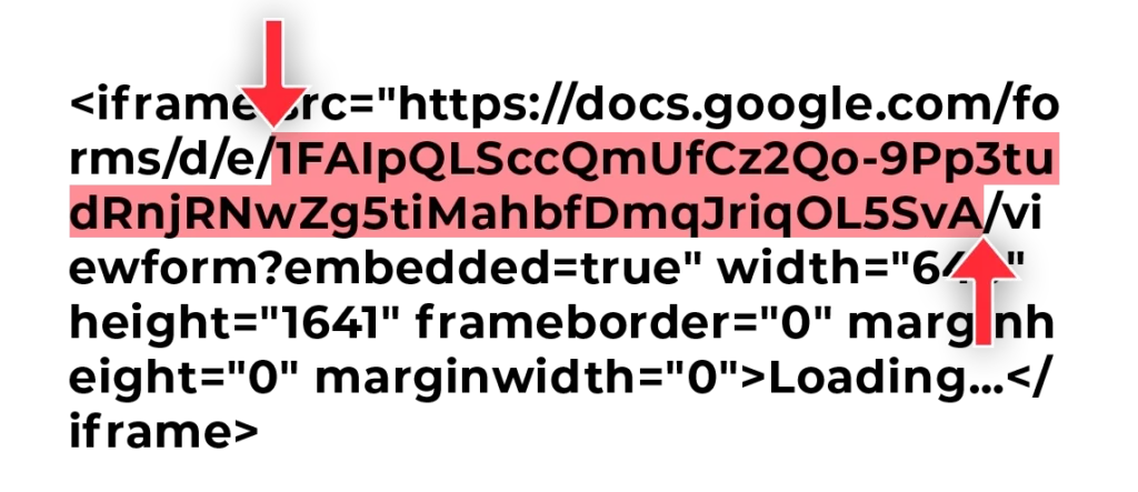 The next piece of information that you need is the Form ID contained within that embed code. This is a little bit harder to find so here are a few tips: